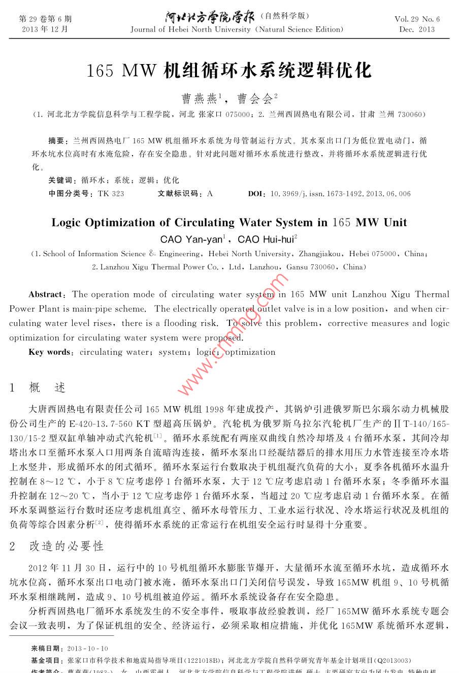 165 MW機(jī)組循環(huán)水系統(tǒng)邏輯優(yōu)化