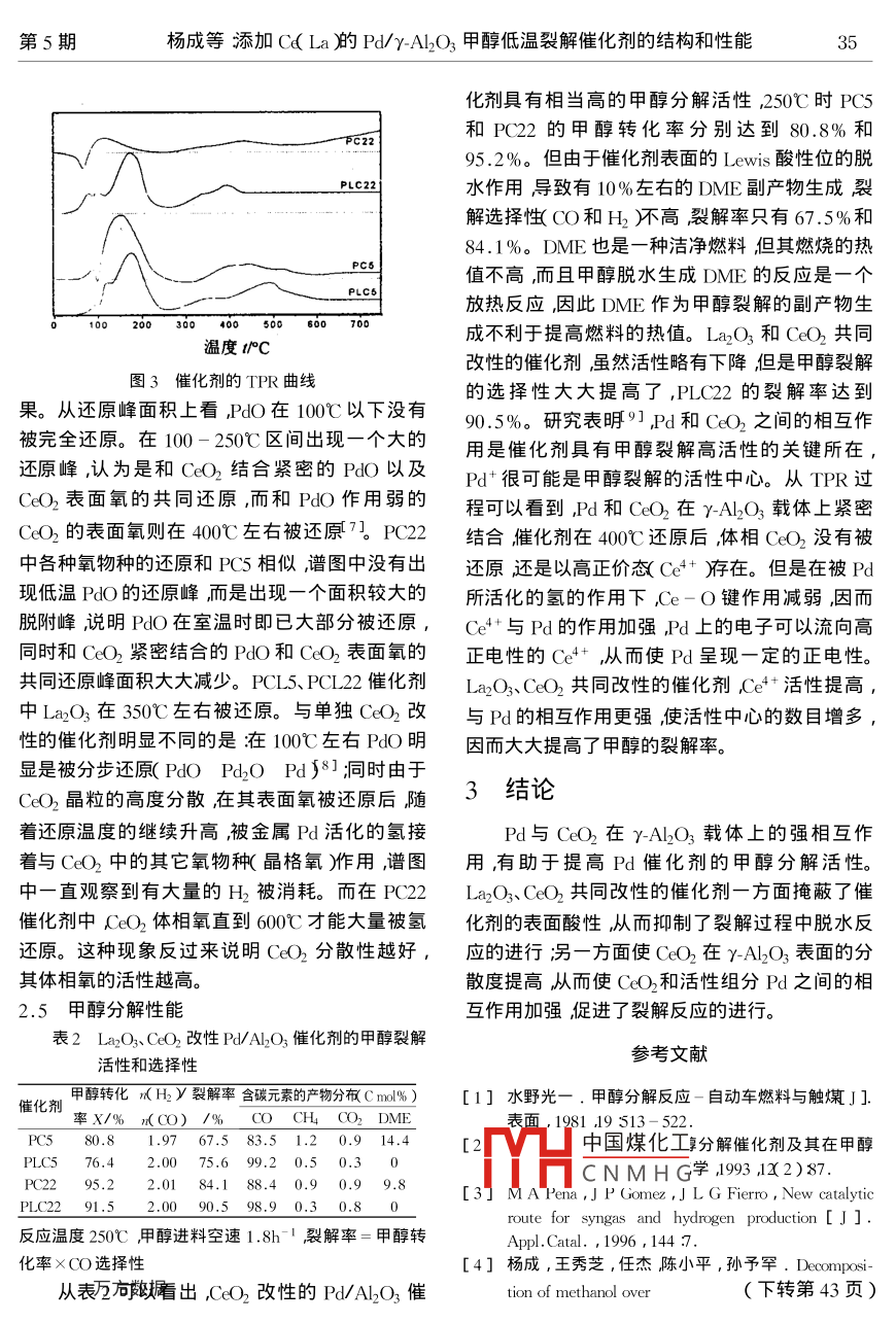 添加Ce(La)的Pd/γ-Al2O3甲醇低溫裂解催化劑的結(jié)構(gòu)和性能