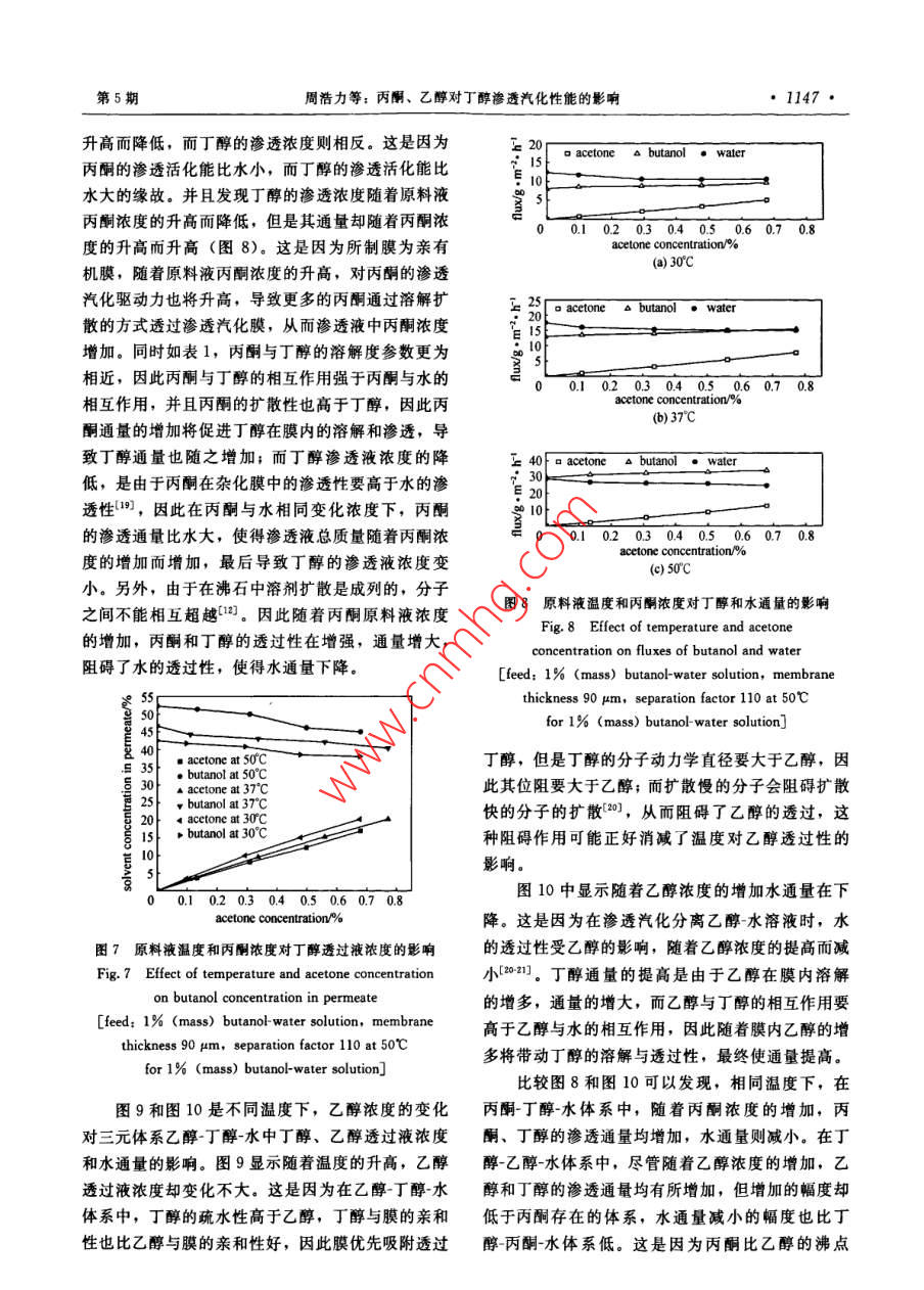 丙酮、乙醇對丁醇滲透汽化性能的影響 丙酮、乙醇對丁醇滲透汽化性能的影響
