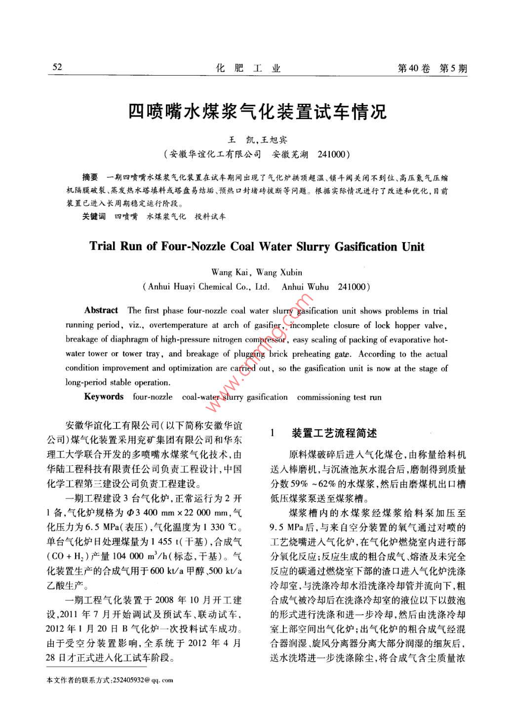四噴嘴水煤漿氣化爐工業(yè)應(yīng)用情況簡(jiǎn)介 2020-03-23