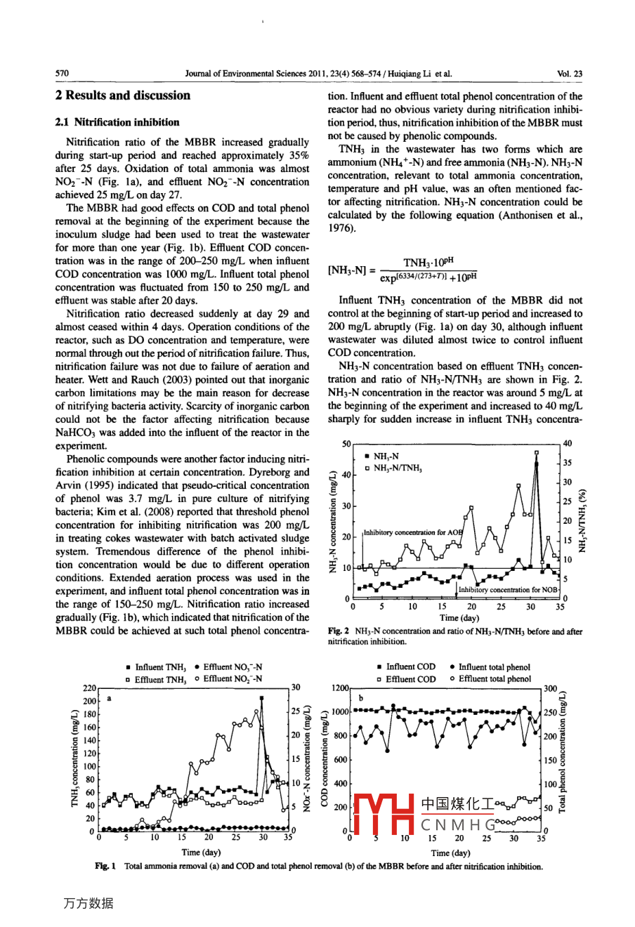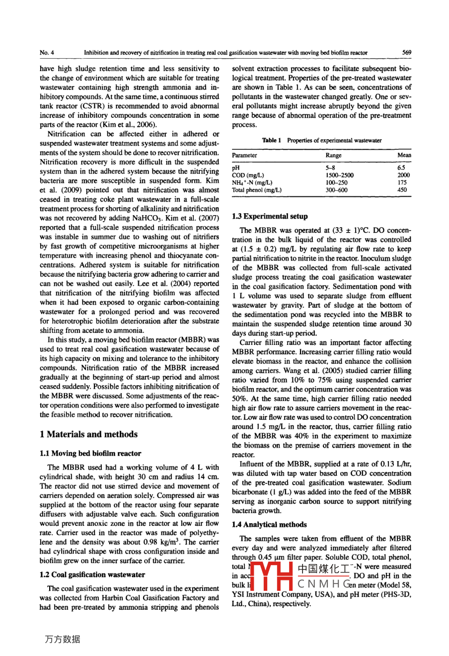 Inhibition and recovery of nitrification in treating real coal gasification wastewater with moving b Inhibition and recovery of nitrification in treating real coal gasification wastewater with moving b