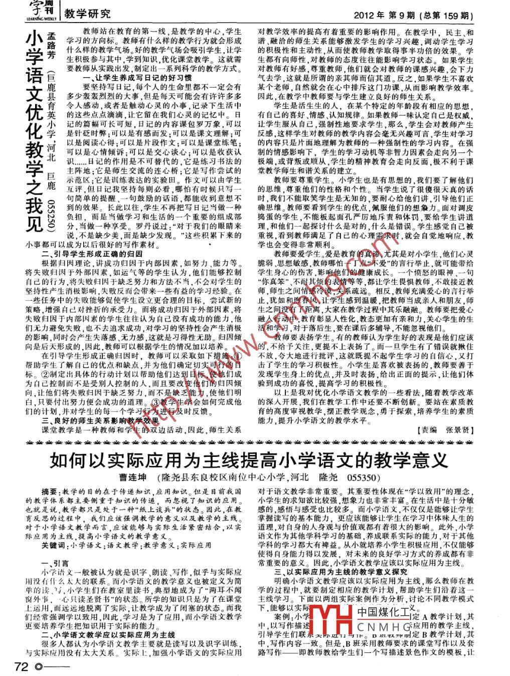 - 作者單位:巨鹿縣育英小學