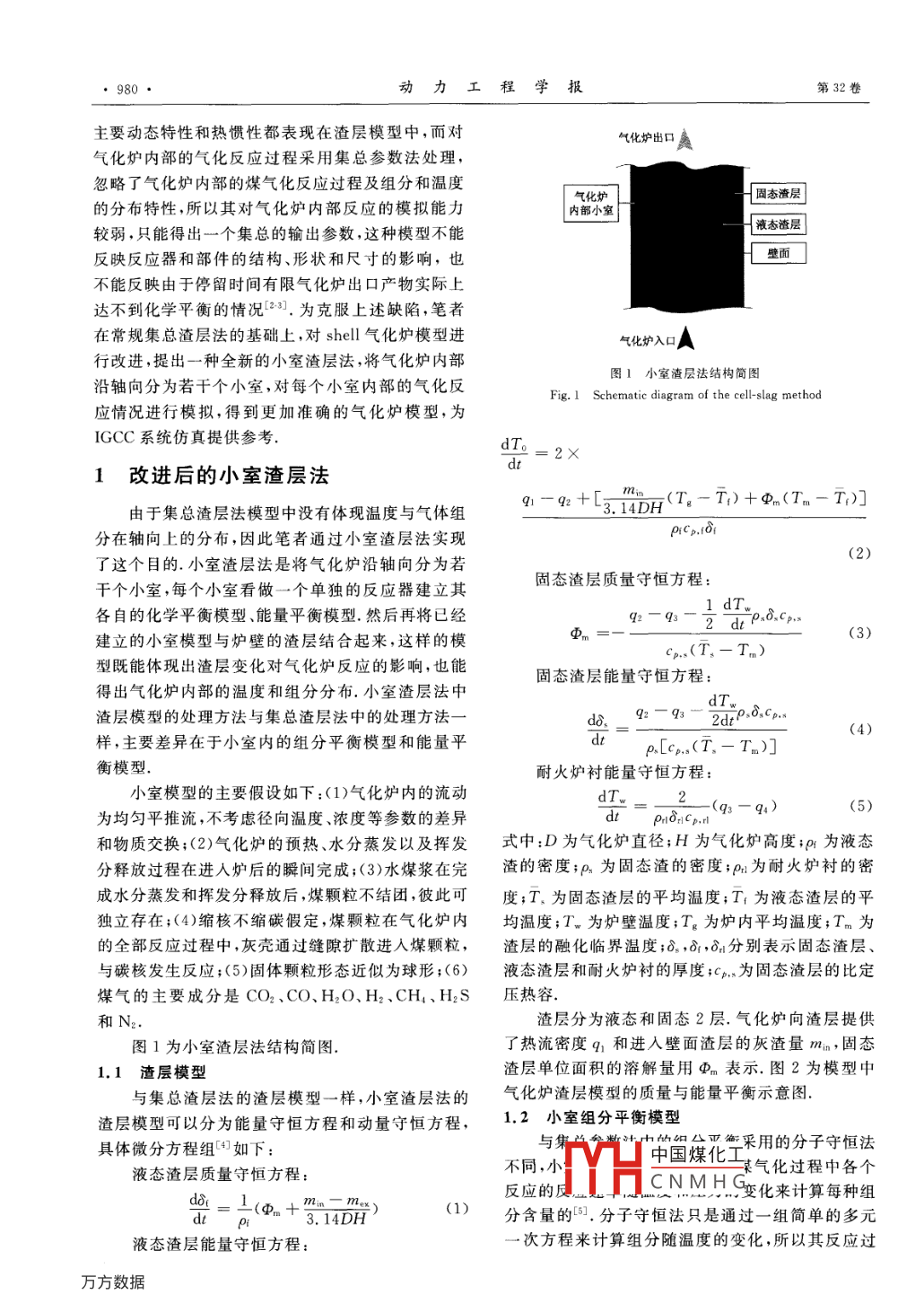 基于渣層法的改進型shell氣化爐動態(tài)建模與仿真研究