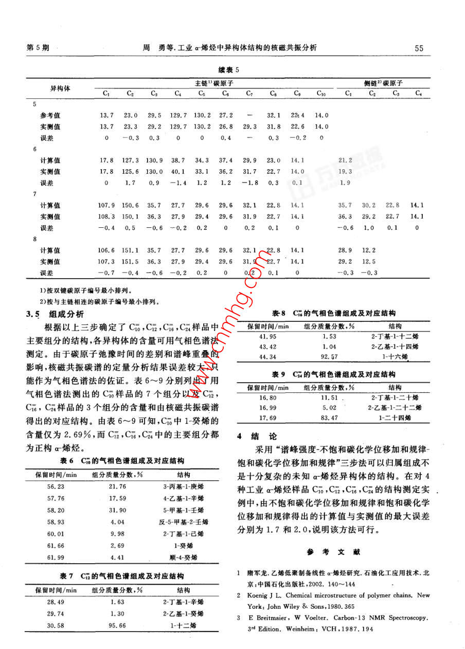 工業(yè)α-烯烴中異構體結構的核磁共振分析