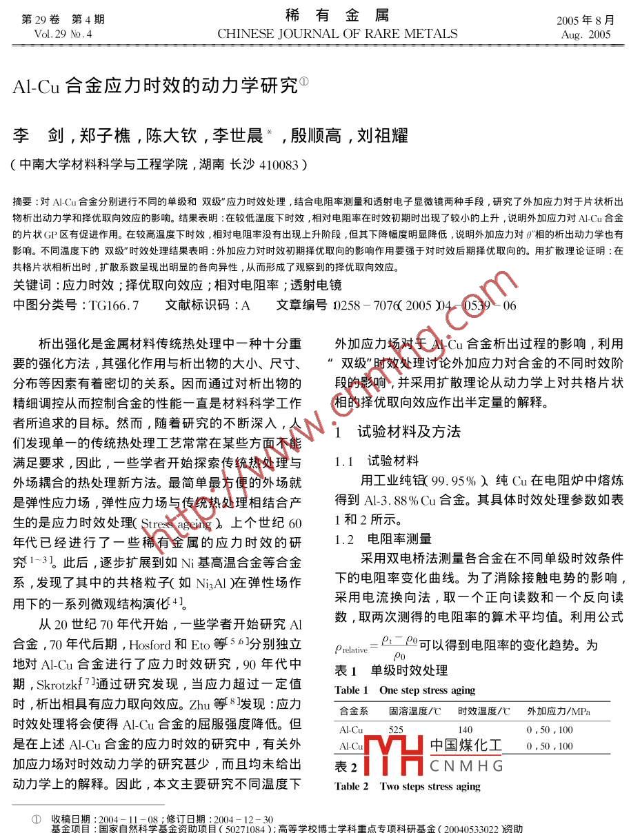 Al-Cu合金應力時效的動力學研究