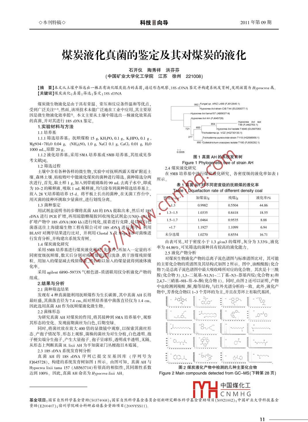 煤炭液化真菌的鑒定及其對煤炭的液化