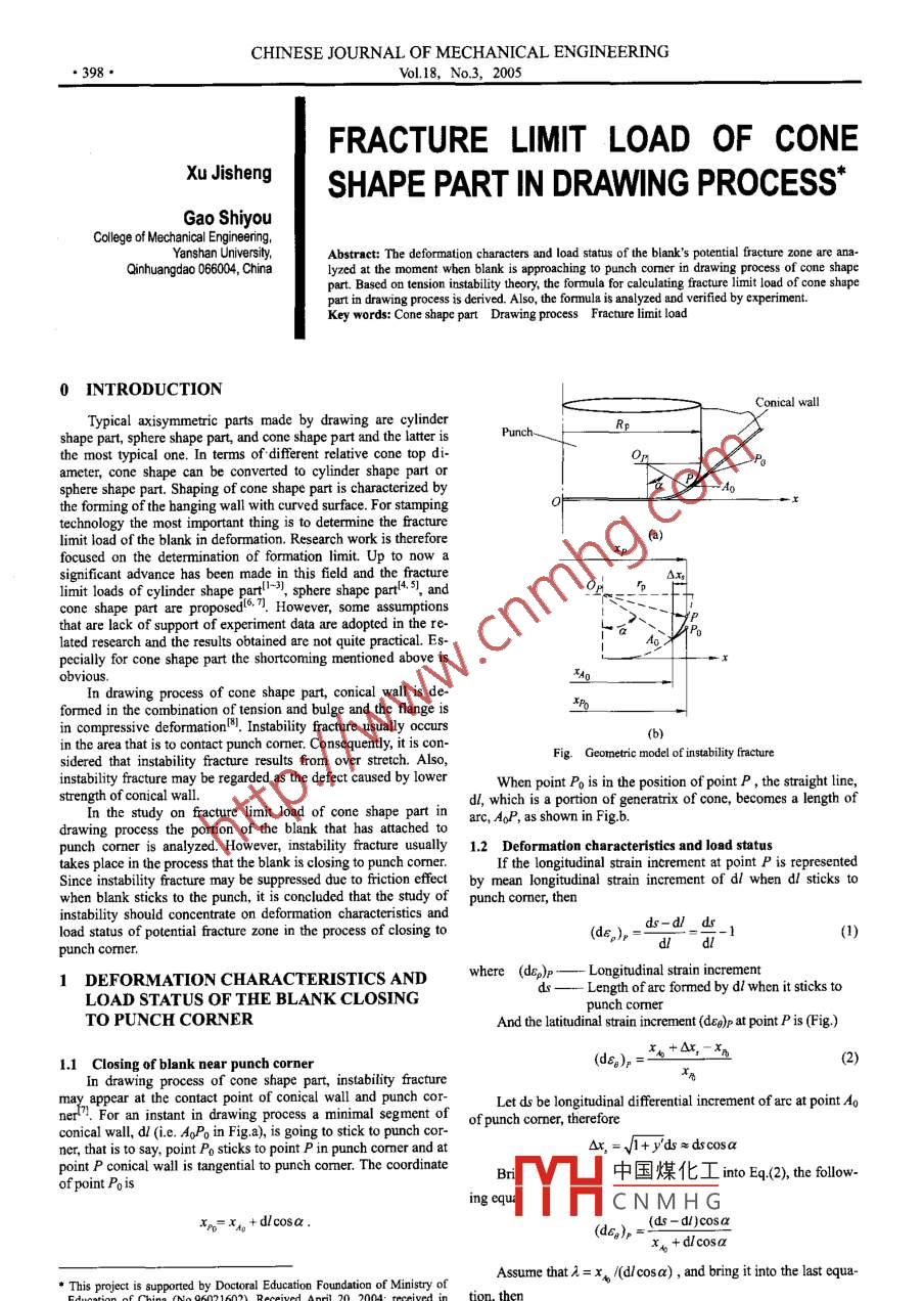 FRACTURE LIMIT LOAD OF CONE SHAPE PART IN DRAWING PROCESS