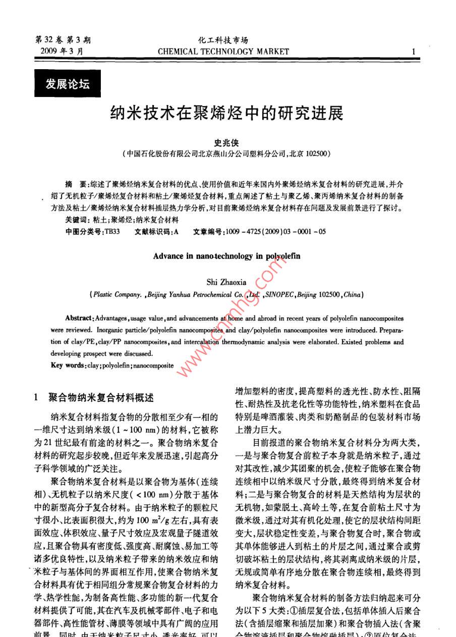納米技術(shù)在聚烯烴中的研究進(jìn)展
