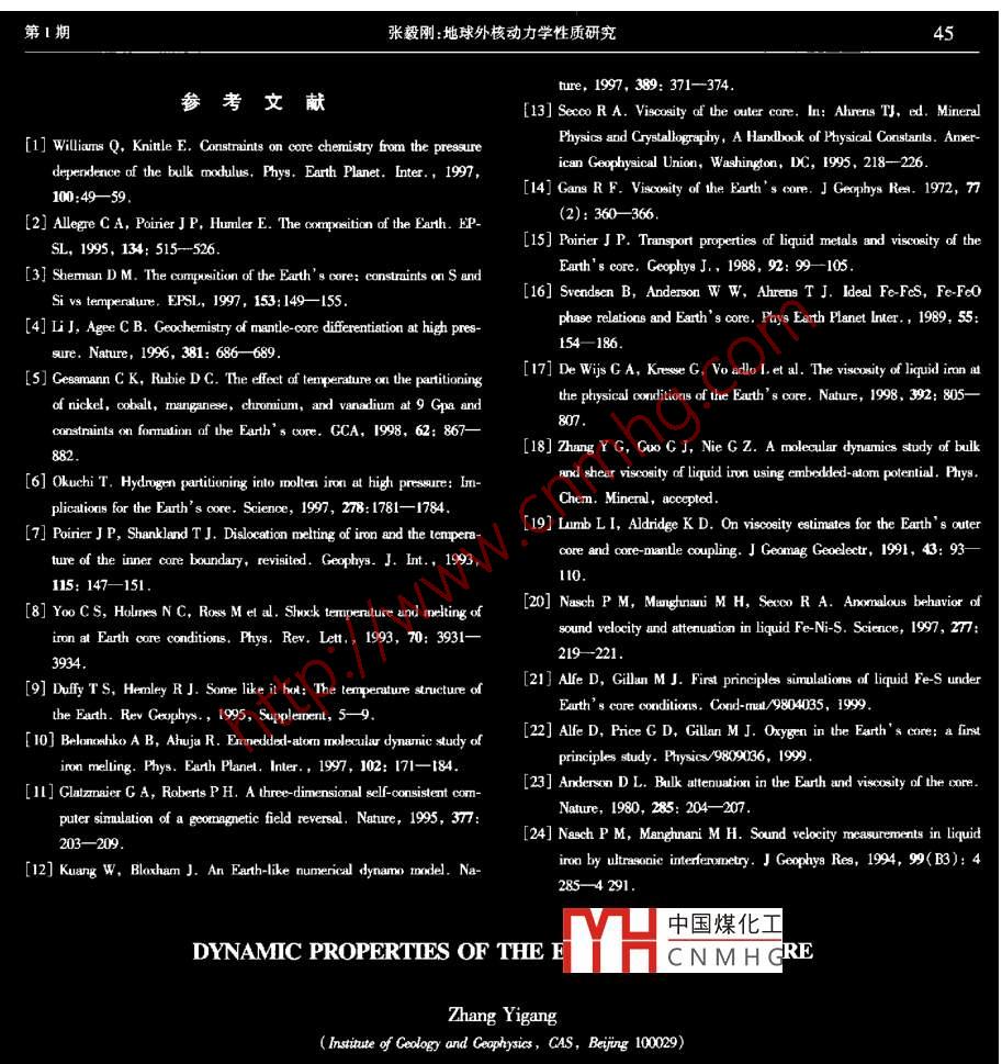 地球外核動(dòng)力學(xué)性質(zhì)研究