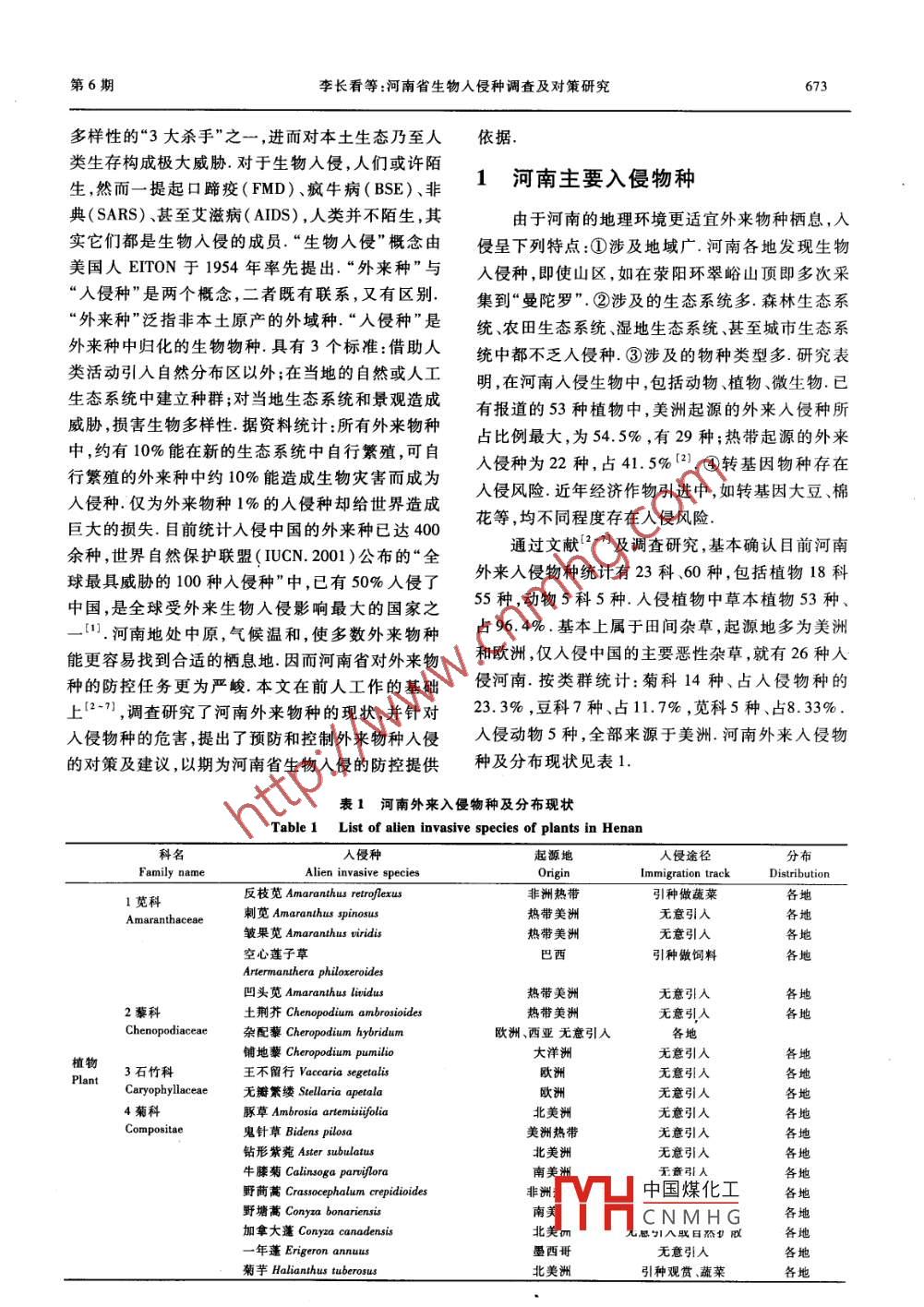 河南省生物入侵種調查及對策研究