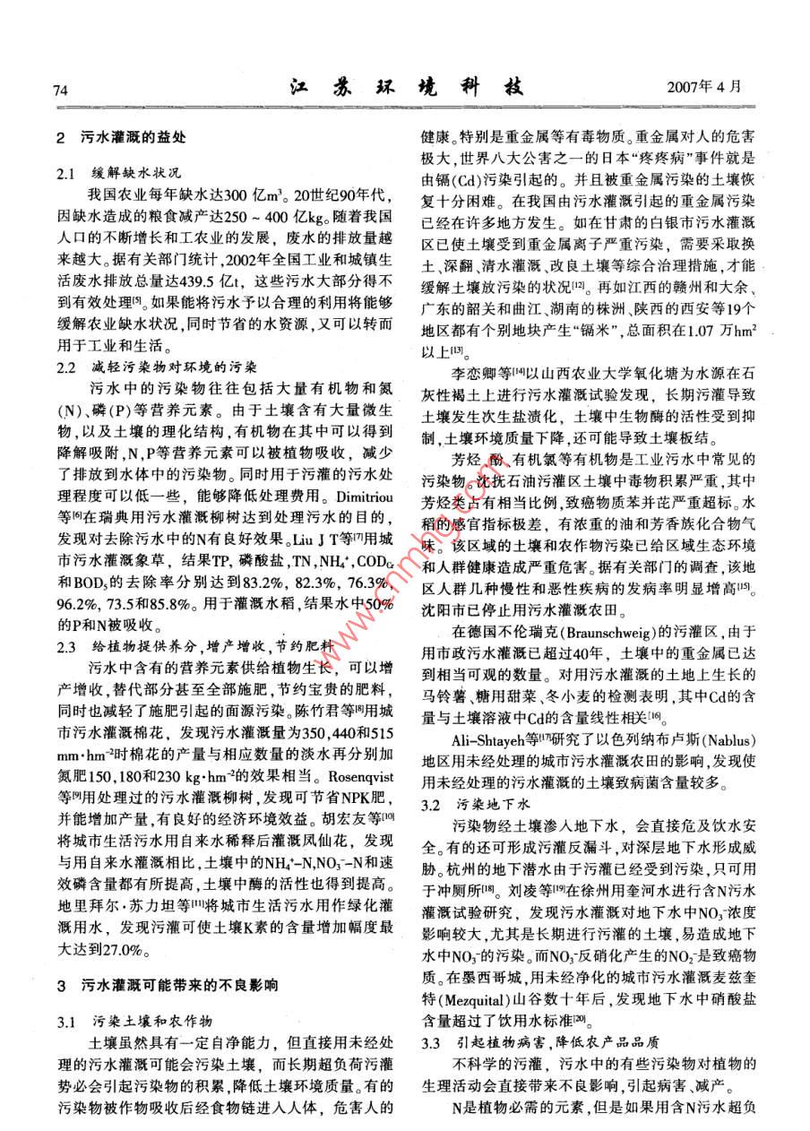 污水灌溉研究綜述