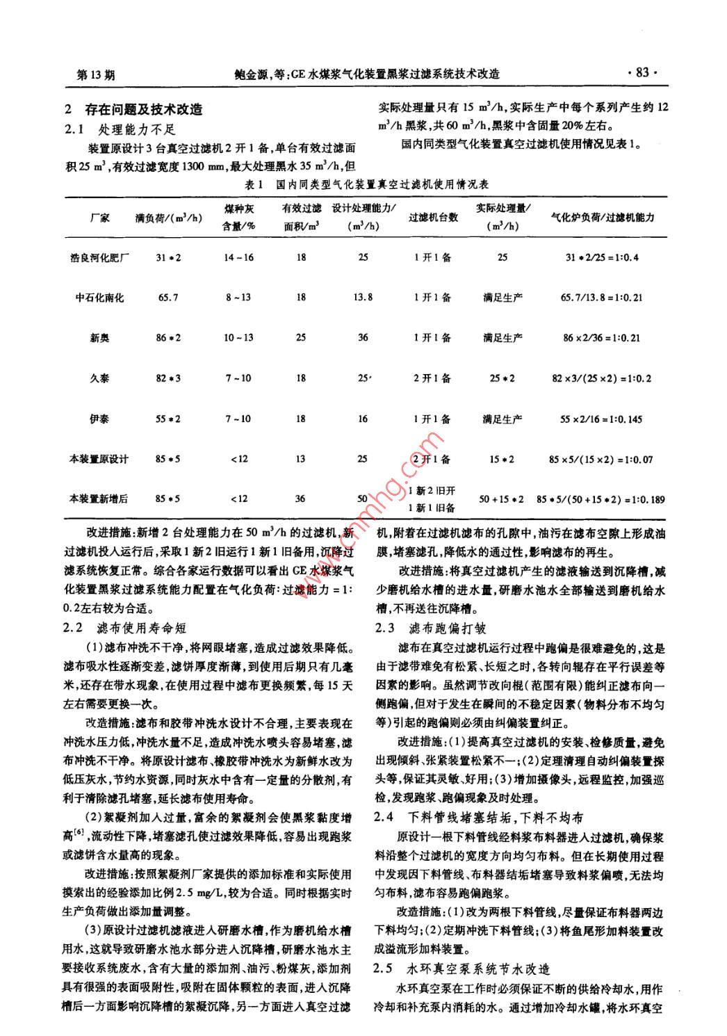 GE水煤漿氣化裝置黑漿過濾系統(tǒng)技術(shù)改造