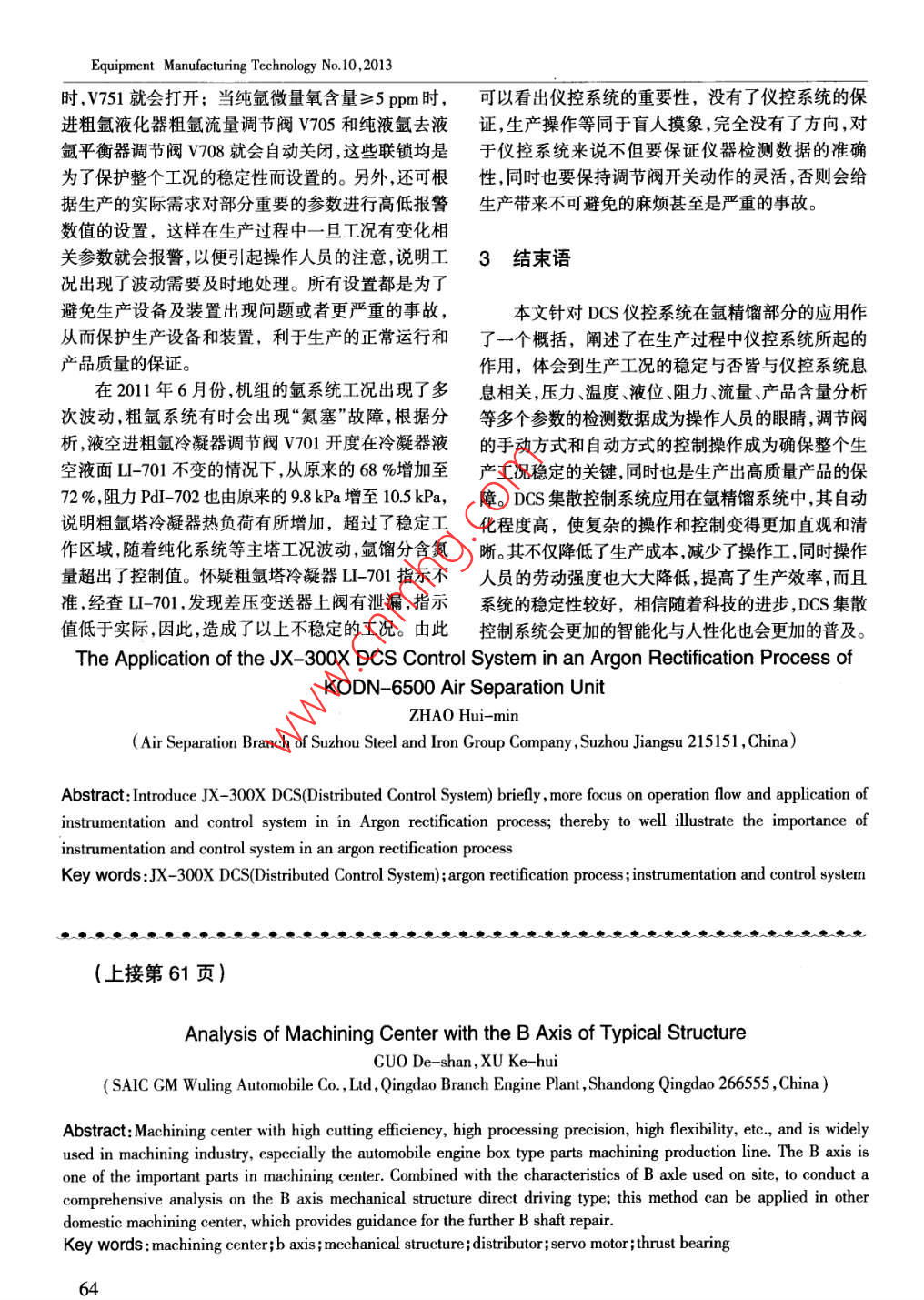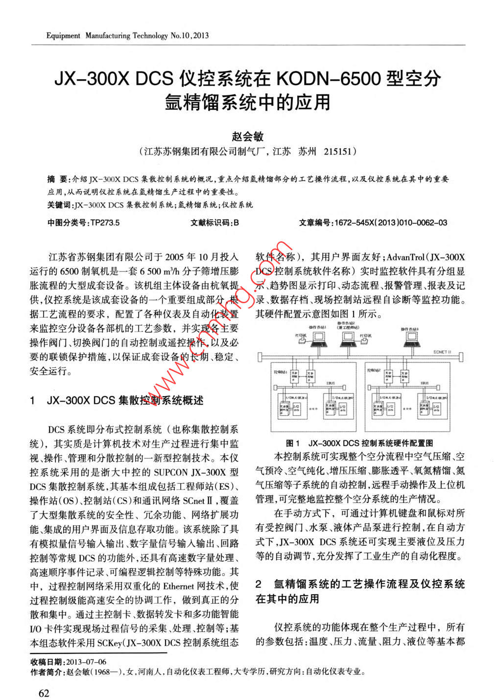 JX-300X DCS儀控系統(tǒng)在KODN-6500型空分氬精餾系統(tǒng)中的應用