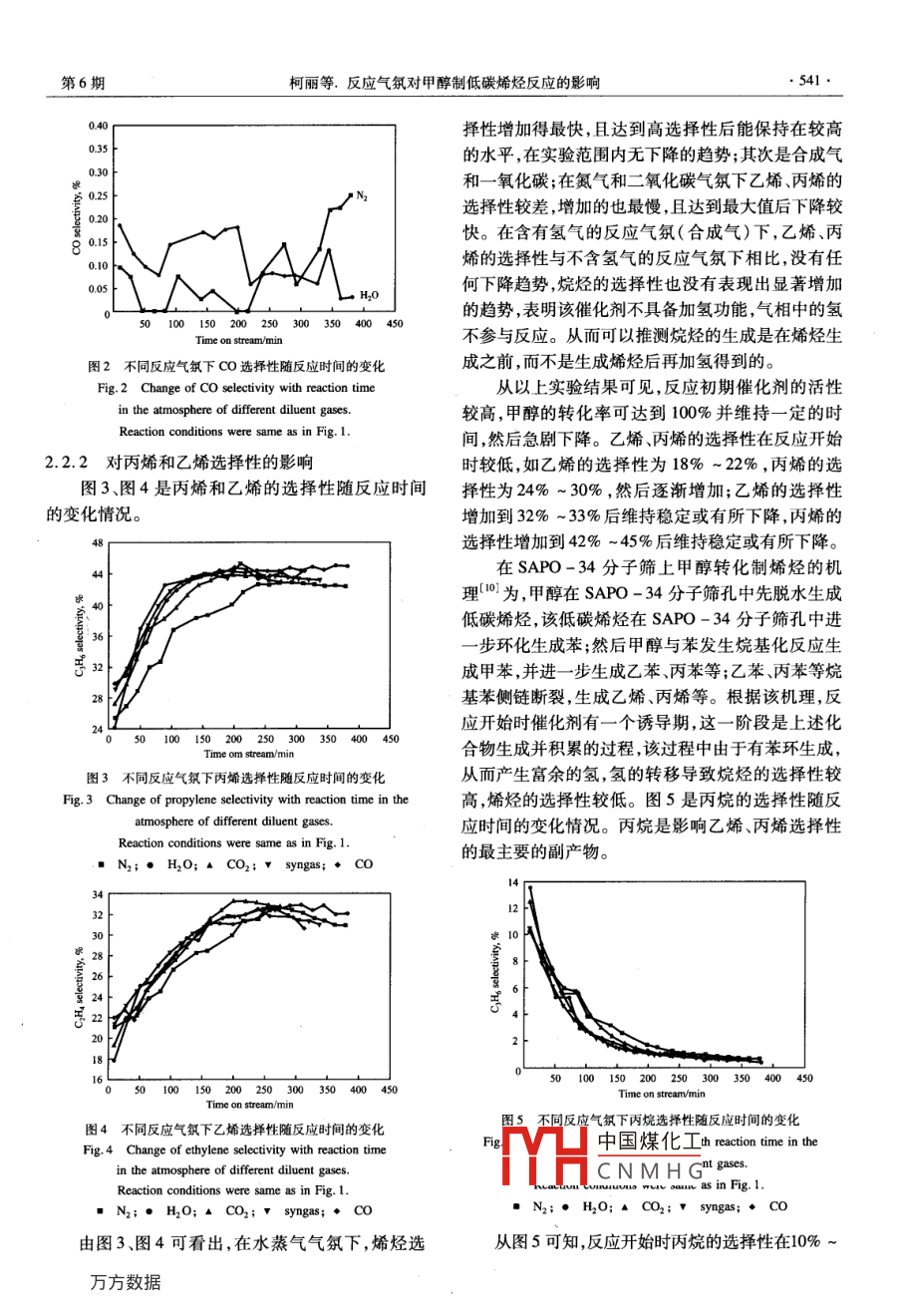 反應(yīng)氣氛對(duì)甲醇制低碳烯烴反應(yīng)的影響