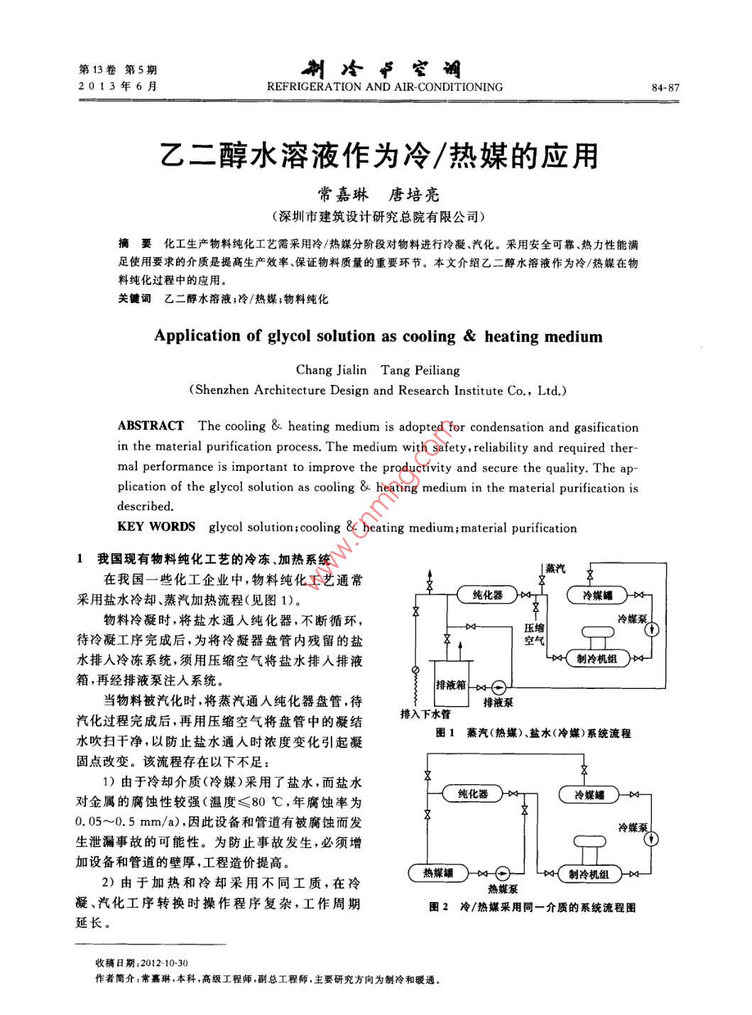 乙二醇水溶液作為冷/熱媒的應(yīng)用