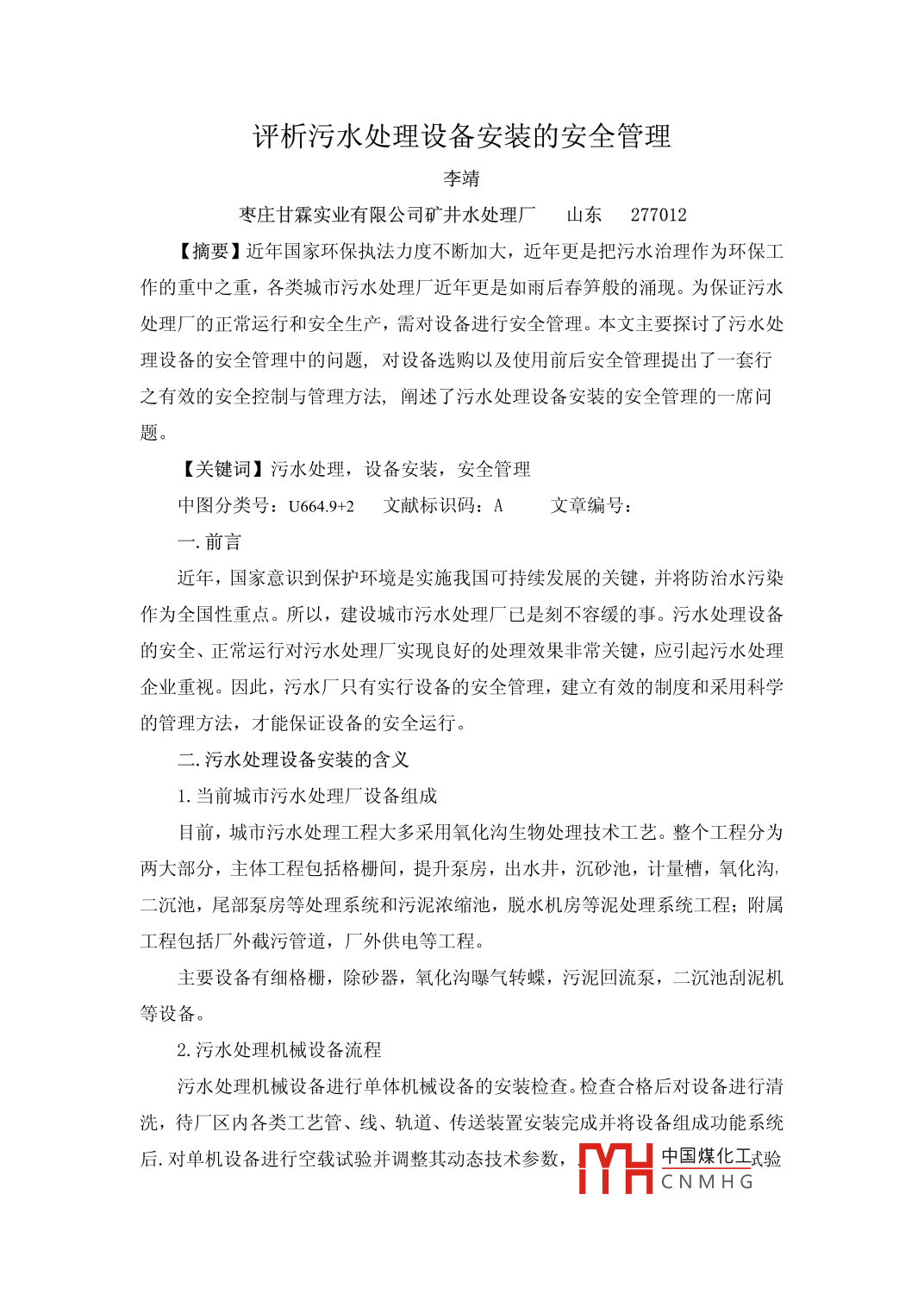 評(píng)析污水處理設(shè)備安裝的安全管理