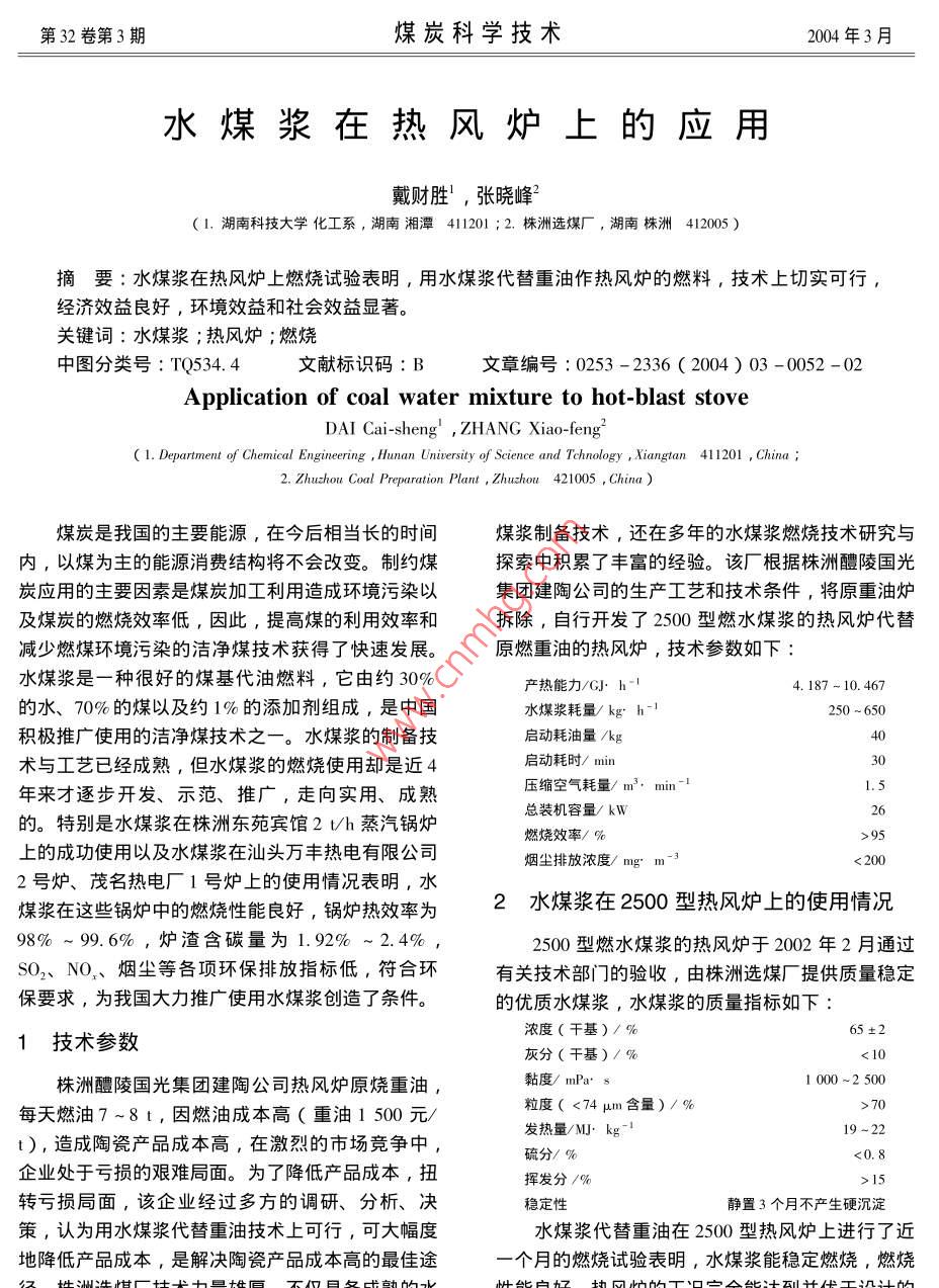 水煤漿在熱風(fēng)爐上的應(yīng)用