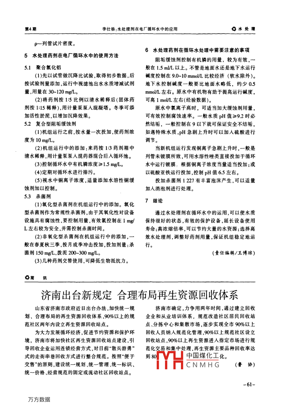 水處理劑在電廠循環(huán)水中的應(yīng)用