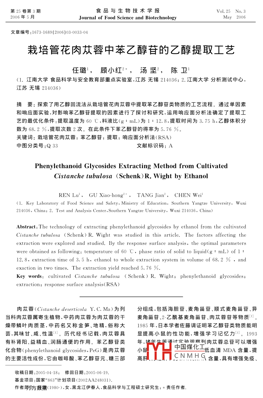 栽培管花肉蓯蓉中苯乙醇苷的乙醇提取工藝