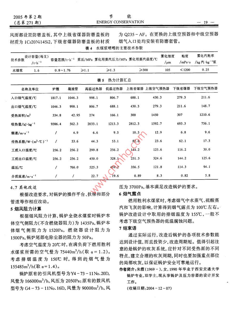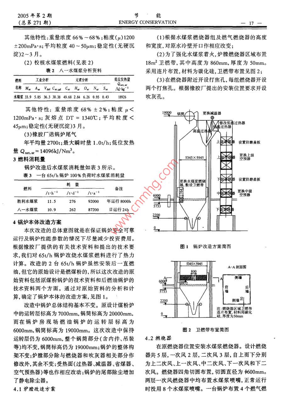 65t/h鍋爐改燒水煤漿燃料的改造設計