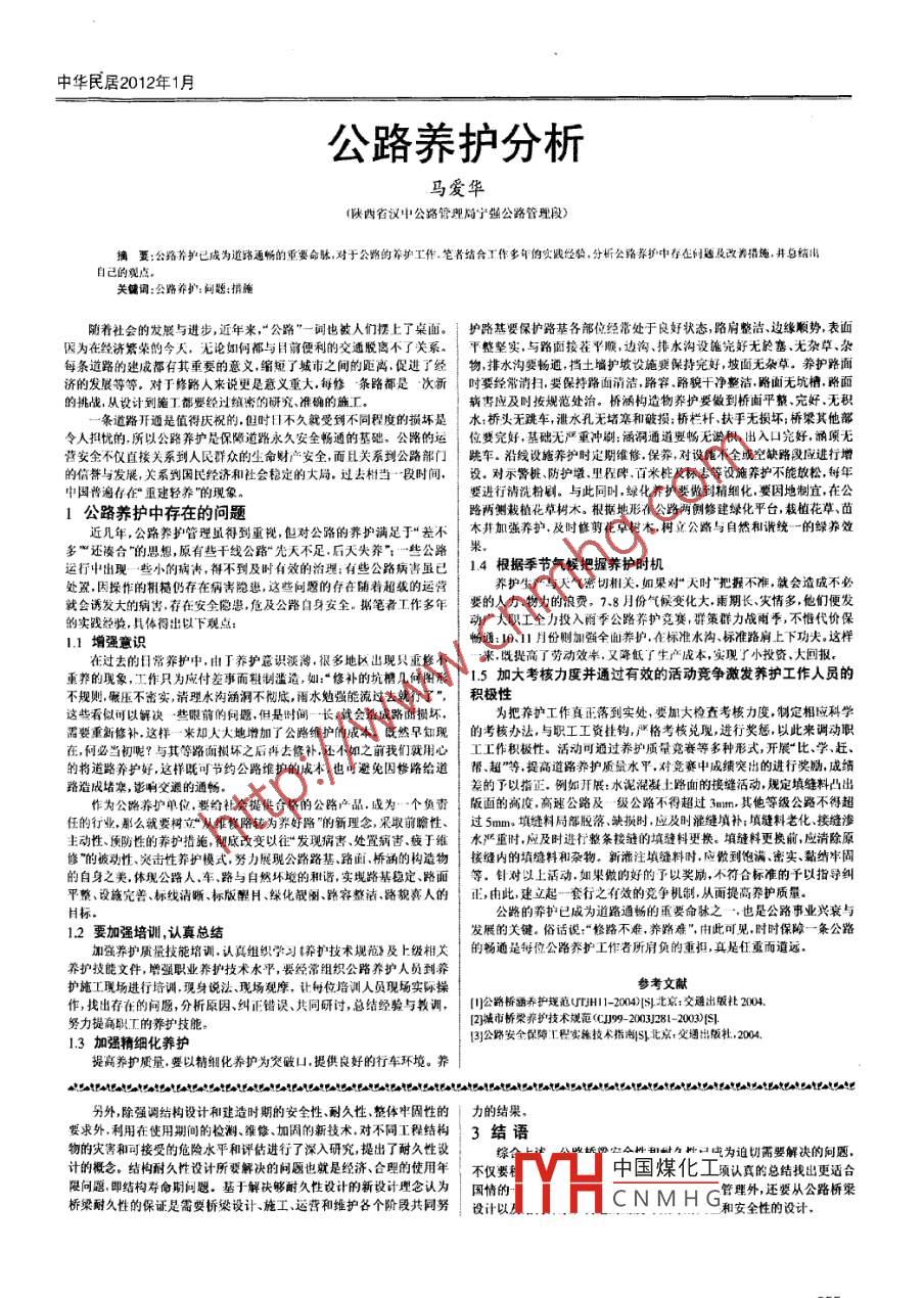 - 作者單位:陜西省漢中公路管理局寧強公路管理段
