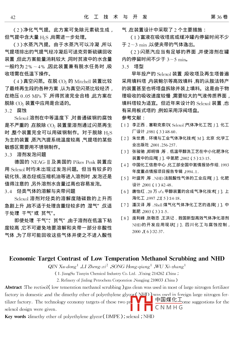 淺談低溫甲醇洗和NHD工藝技術(shù)經(jīng)濟(jì)指標(biāo)對比