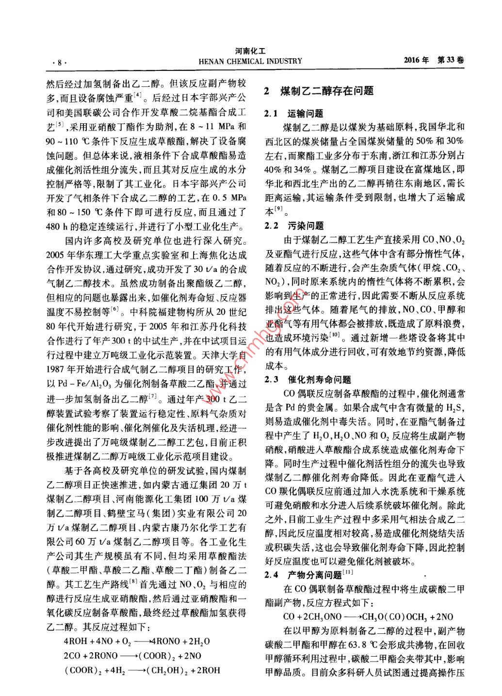 煤制乙二醇進(jìn)展及問(wèn)題分析