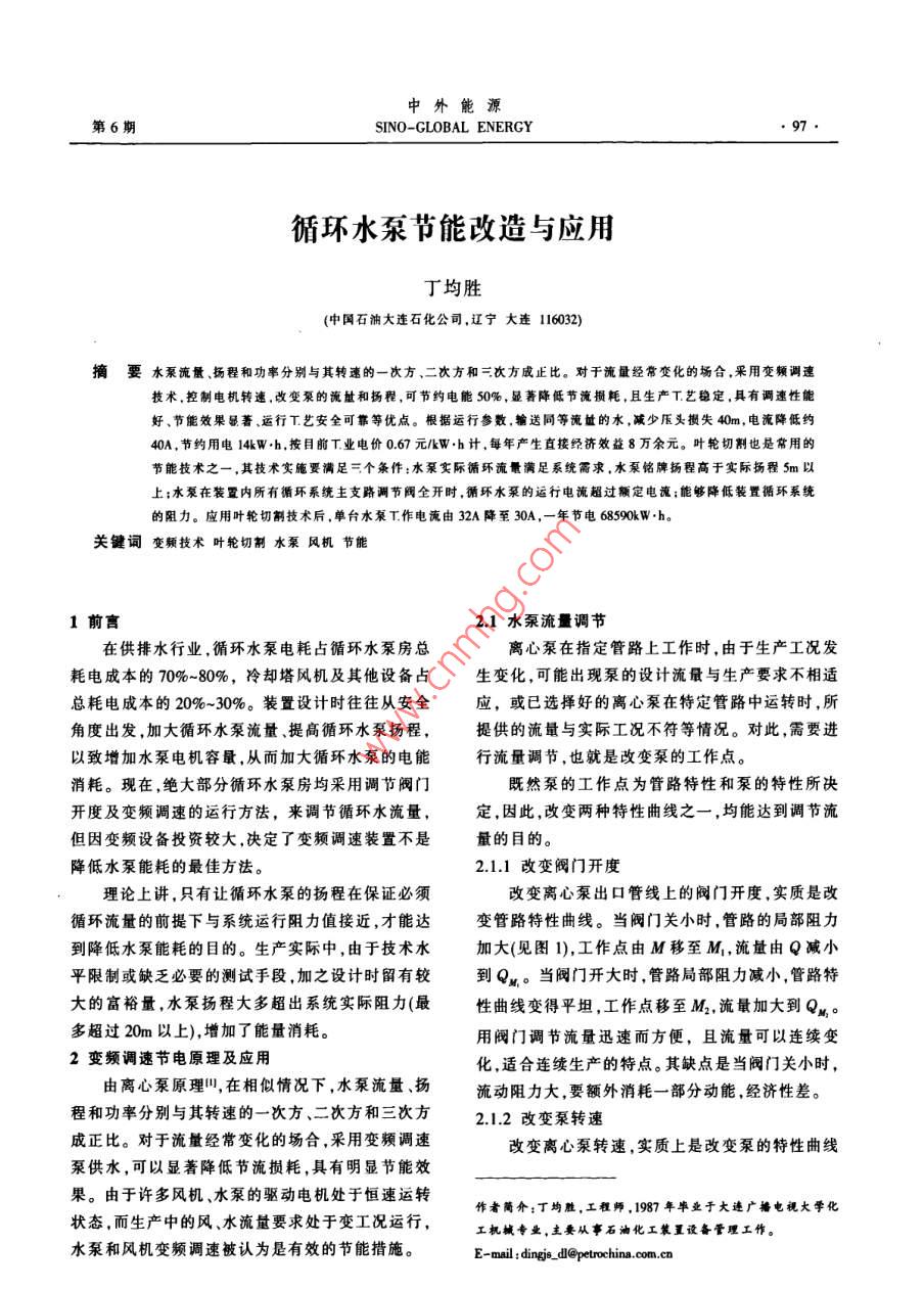 循環(huán)水泵節(jié)能改造與應(yīng)用