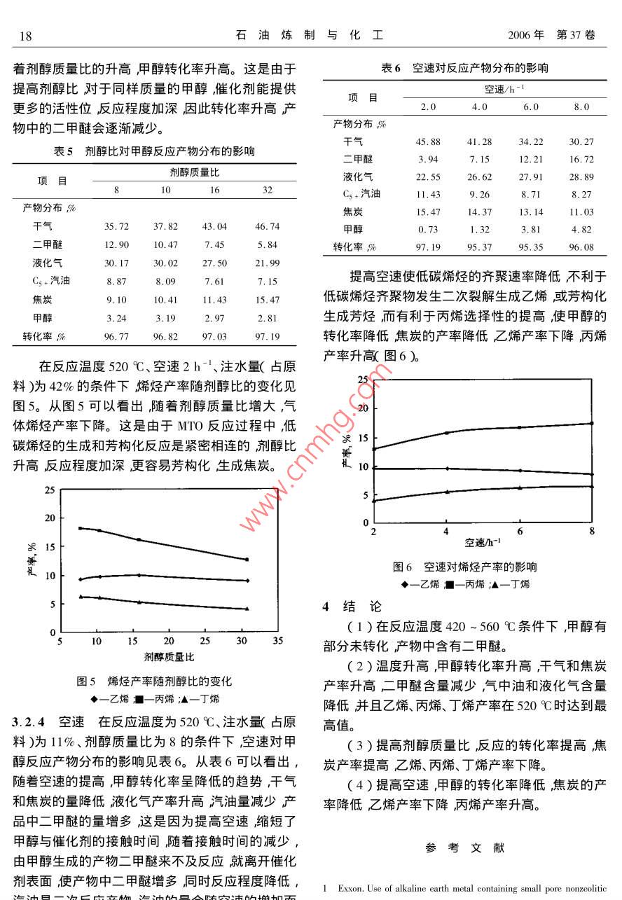 甲醇轉(zhuǎn)化制烯烴反應規(guī)律的研究
