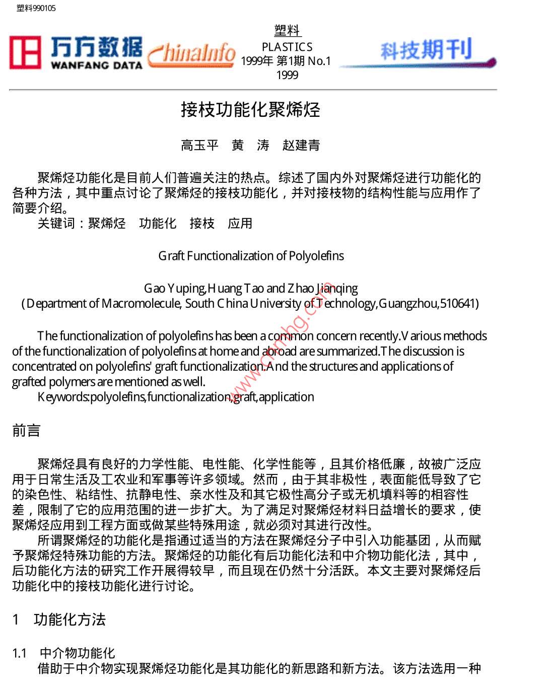 - 期刊名字:塑料