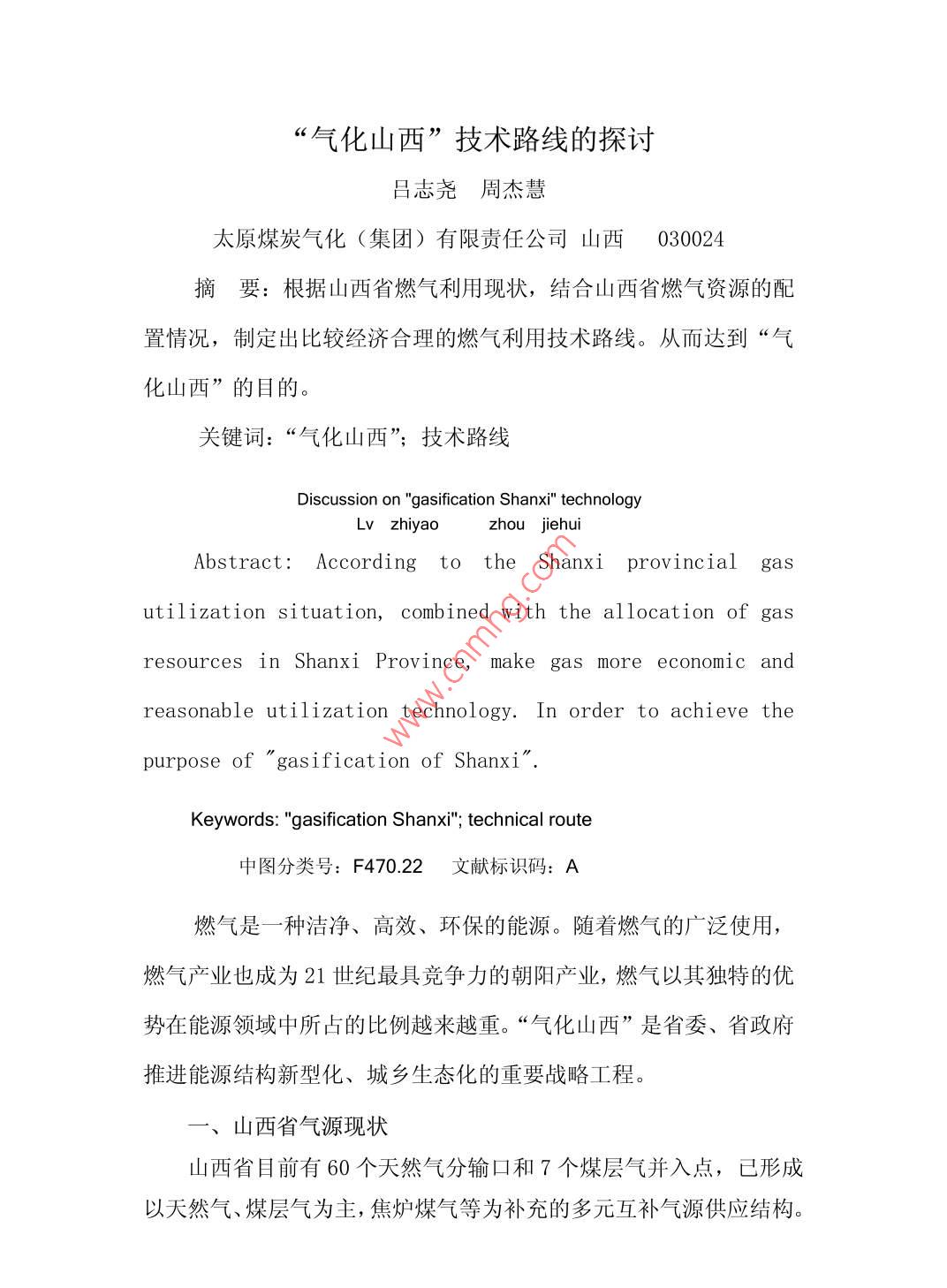 “氣化山西”技術(shù)路線的探討 “氣化山西”技術(shù)路線的探討