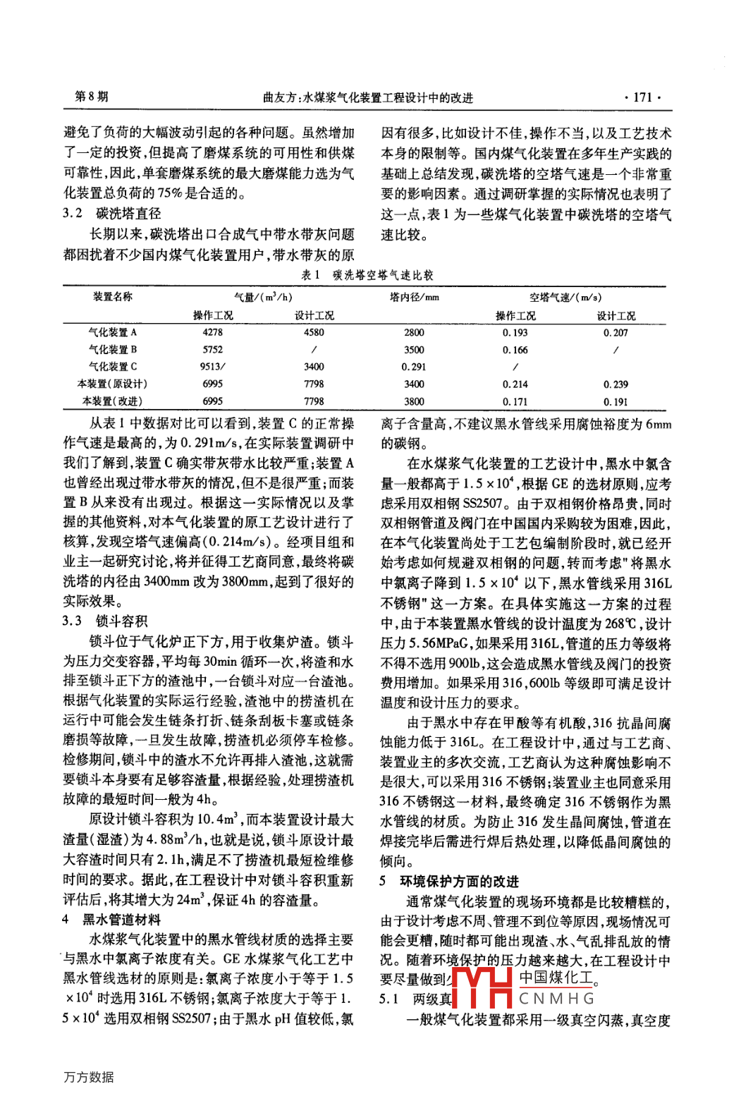 水煤漿氣化裝置工程設(shè)計(jì)中的改進(jìn)