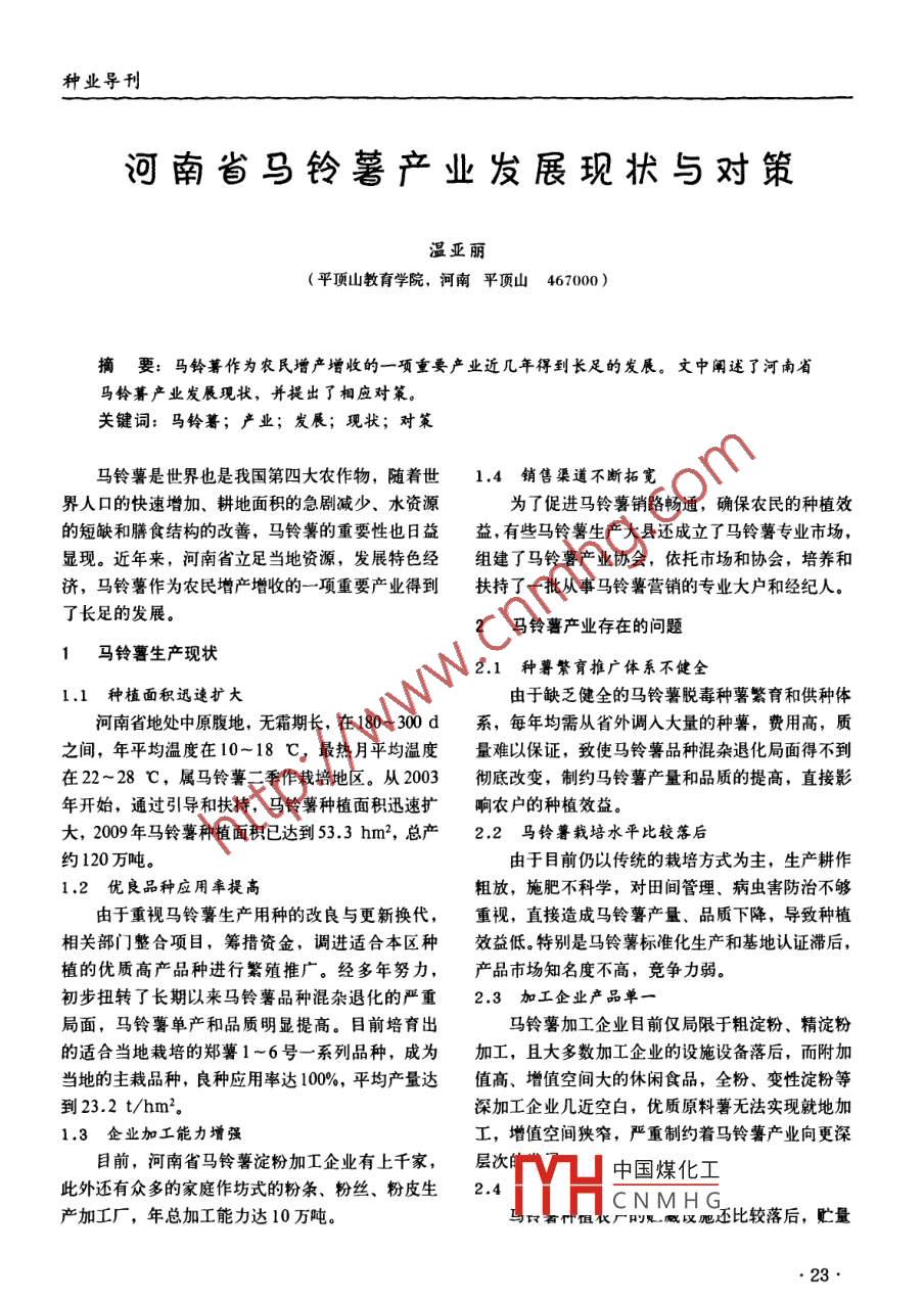 河南省馬鈴薯產(chǎn)業(yè)發(fā)展現(xiàn)狀與對(duì)策