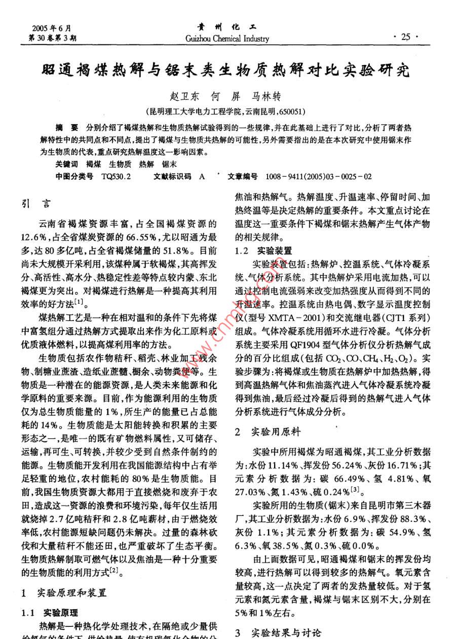 昭通褐煤熱解與鋸末類生物質(zhì)熱解對(duì)比實(shí)驗(yàn)研究