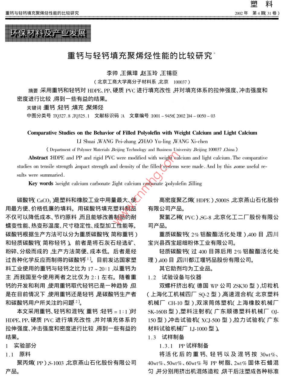 重鈣與輕鈣填充聚烯烴性能的比較研究