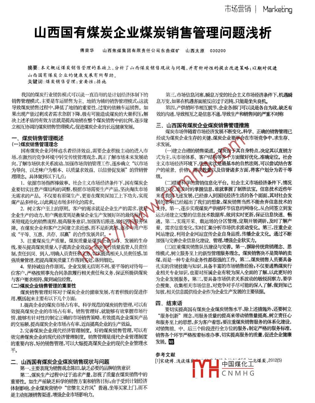 山西國有煤炭企業(yè)煤炭銷售管理問題淺析