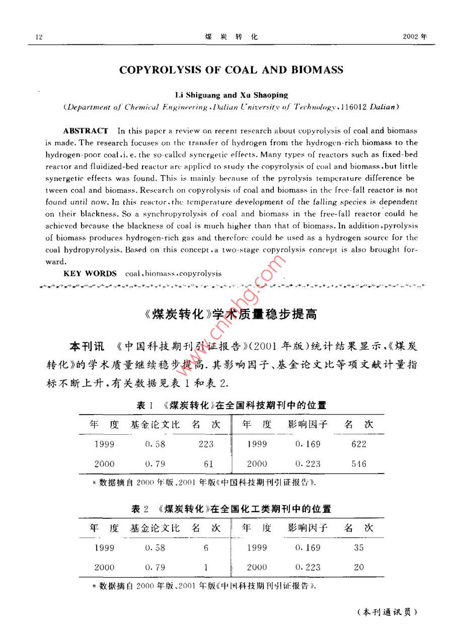 - 期刊名字:煤炭轉(zhuǎn)化