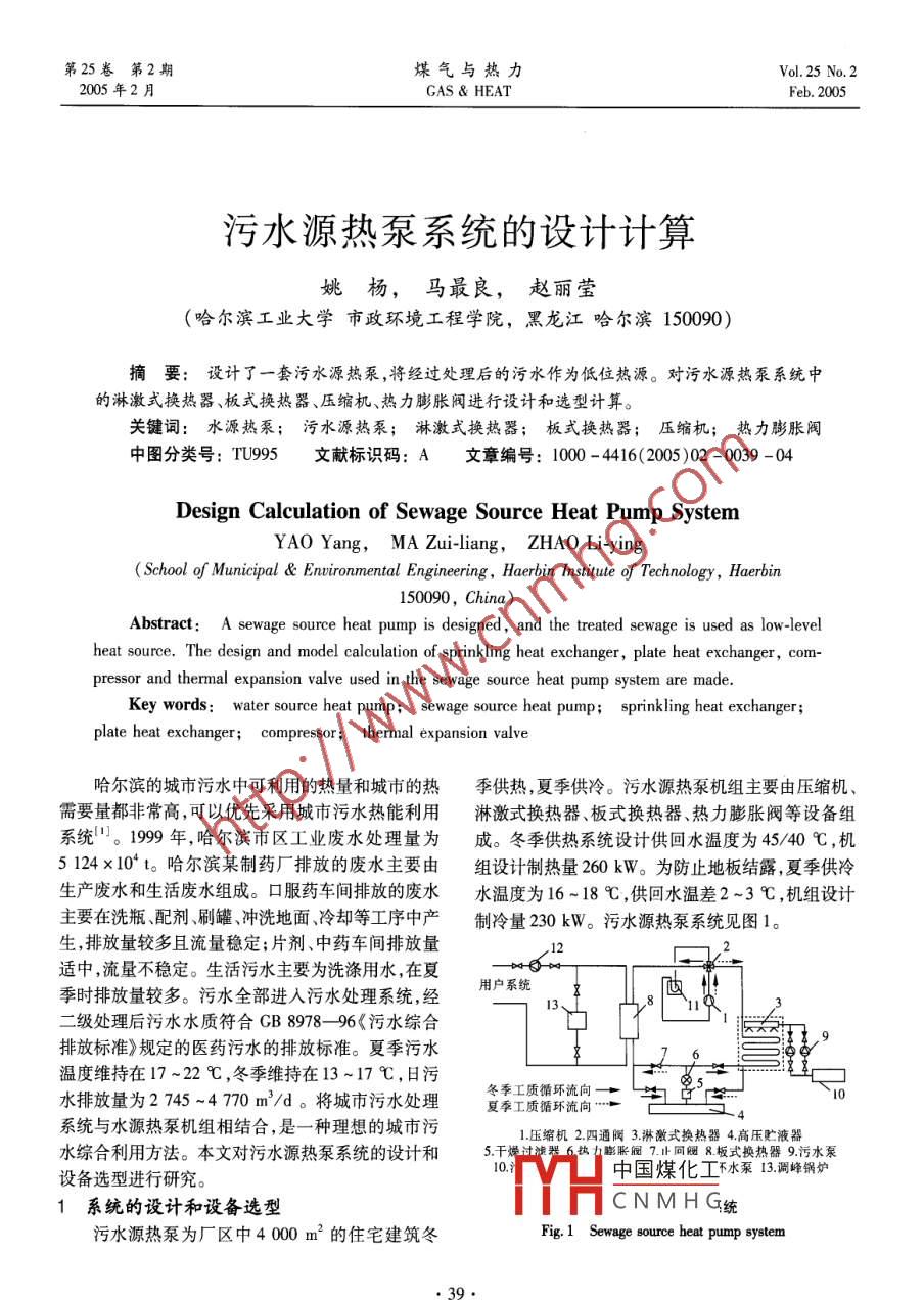 污水源熱泵系統(tǒng)的設(shè)計(jì)計(jì)算