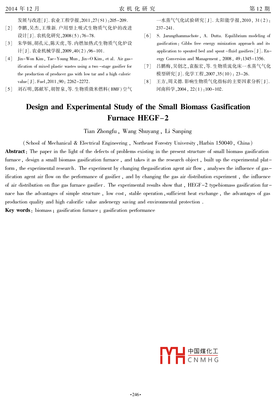 小型生物質(zhì)氣化爐 HEGF-2的設(shè)計及實驗研究