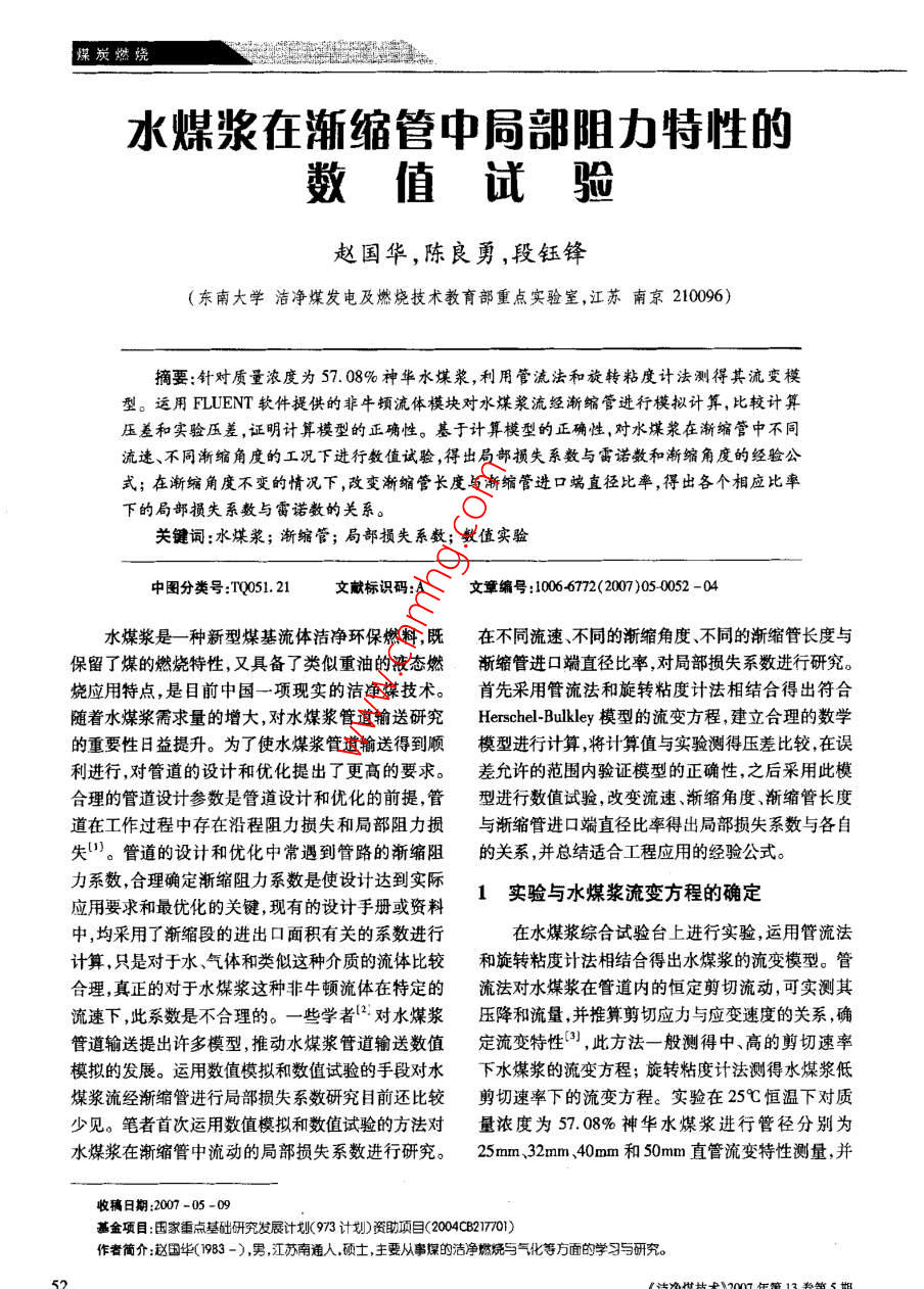 水煤漿在漸縮管中局部阻力特性的數(shù)值試驗(yàn)