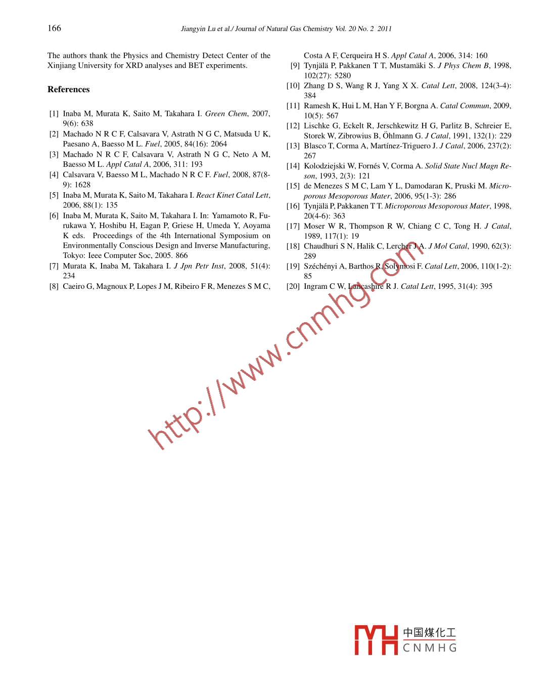 - 期刊名字:天然氣化學(xué)(英文版)