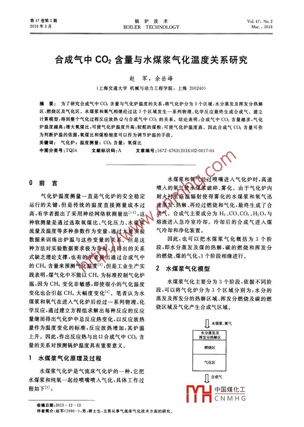 合成氣中CO2含量與水煤漿氣化溫度關(guān)系研究