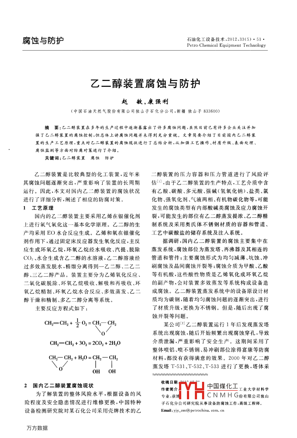 乙二醇裝置腐蝕與防護
