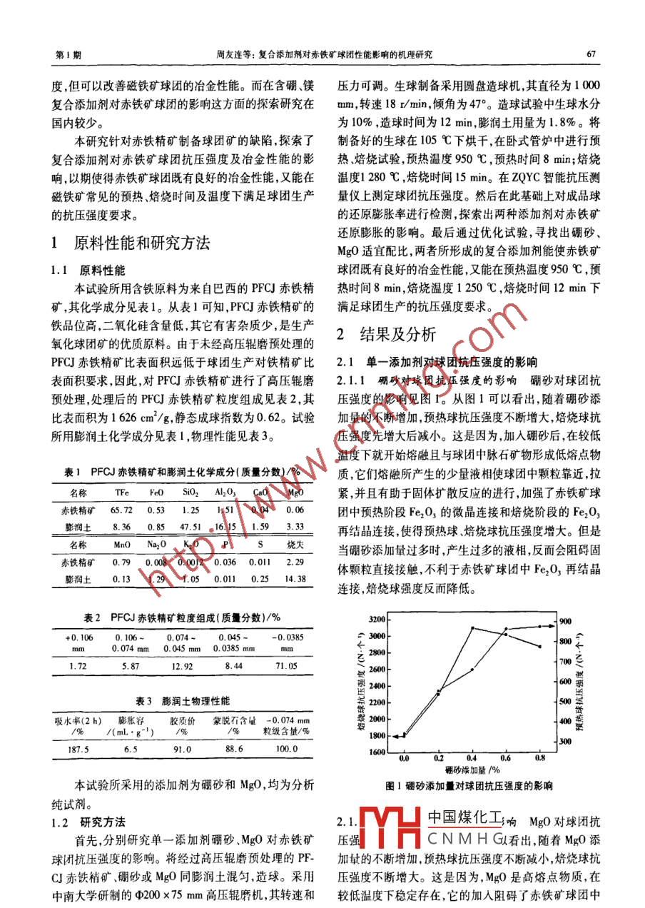 復(fù)合添加劑對赤鐵礦球團(tuán)性能影響的機(jī)理研究