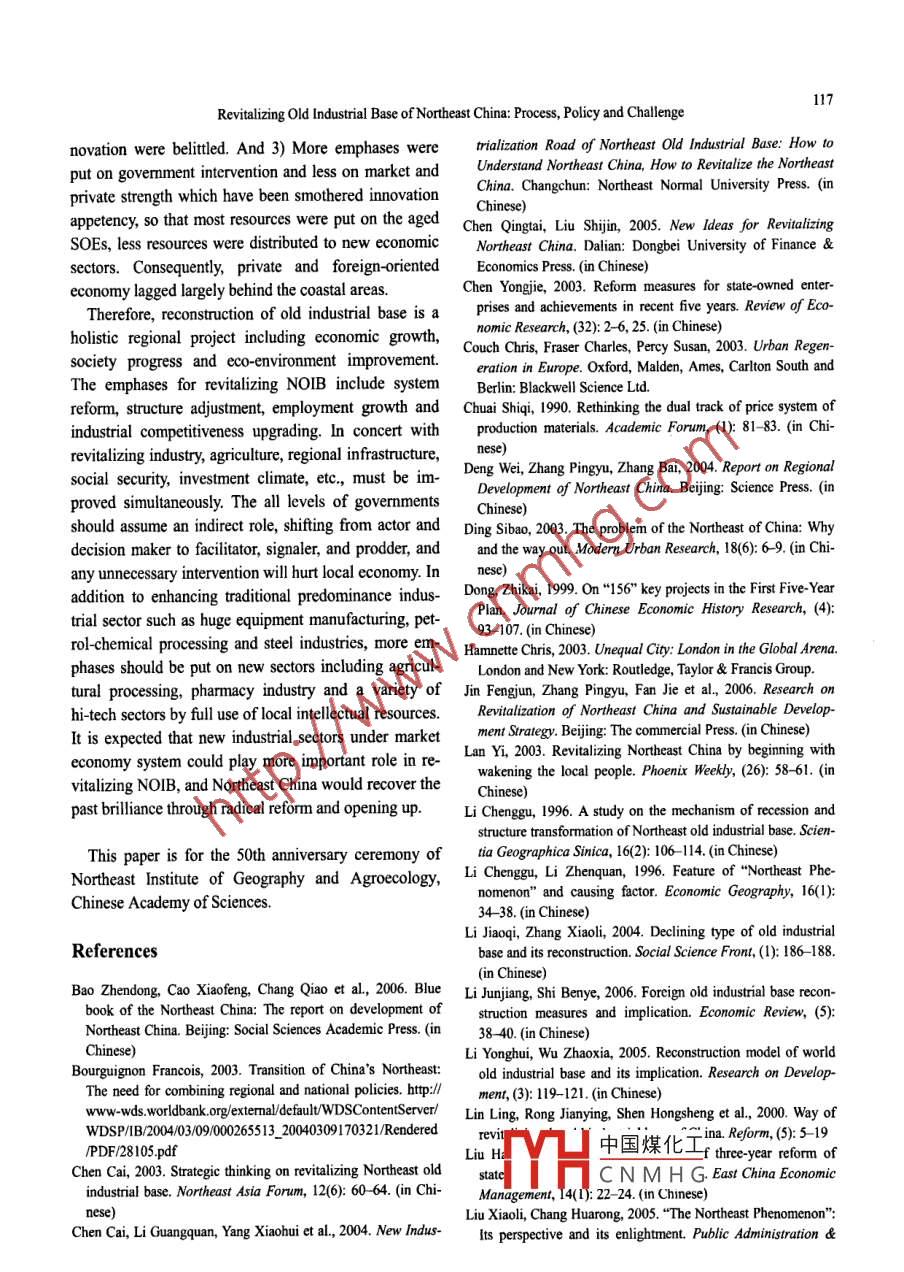 Revitalizing Old Industrial Base of Northeast China: Process,Policy and Challenge