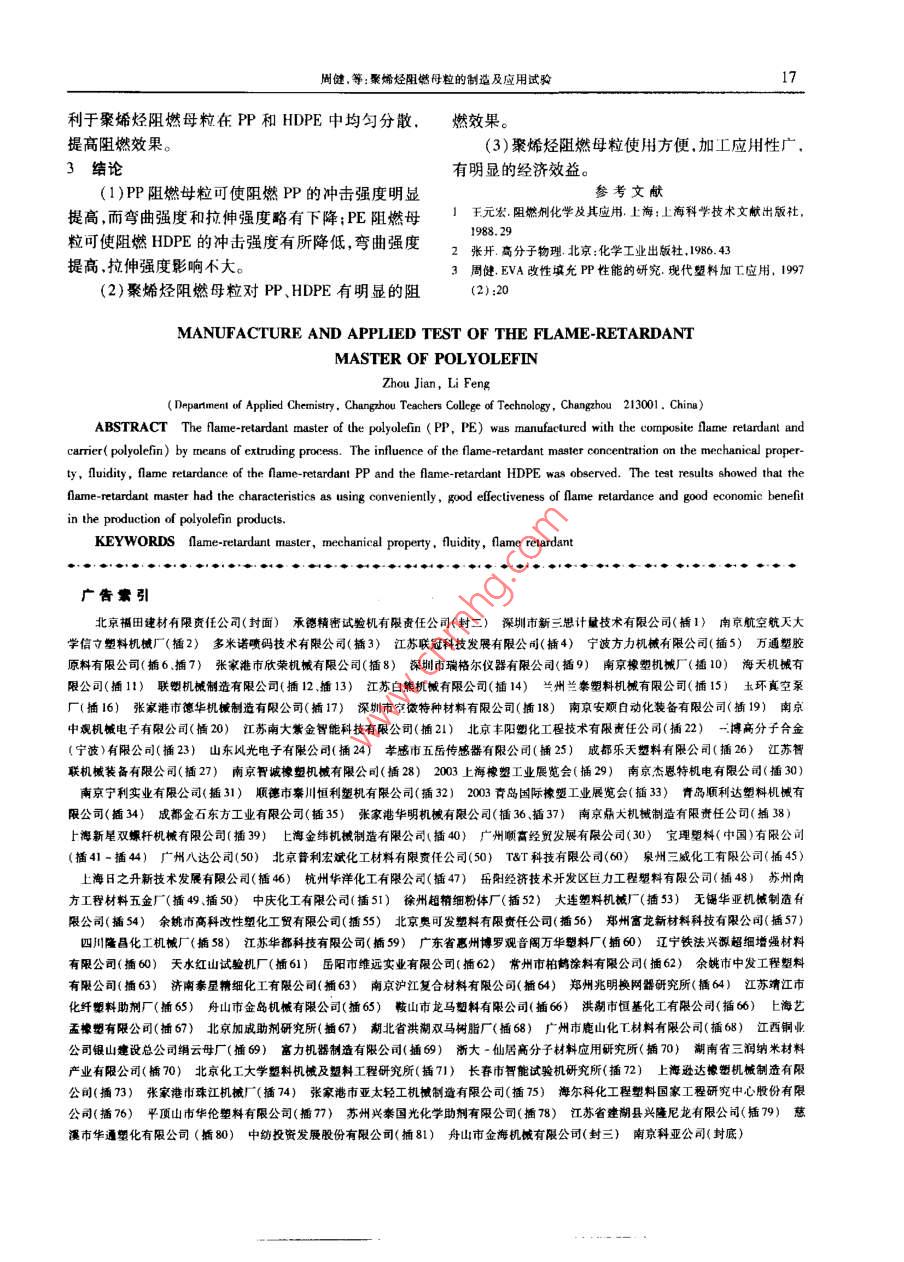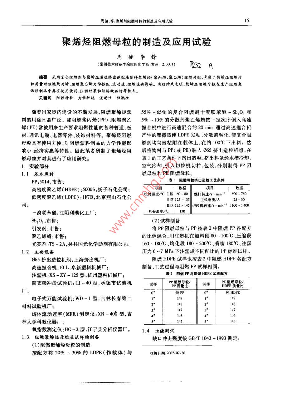 聚烯烴阻燃母粒的制造及應(yīng)用試驗(yàn)