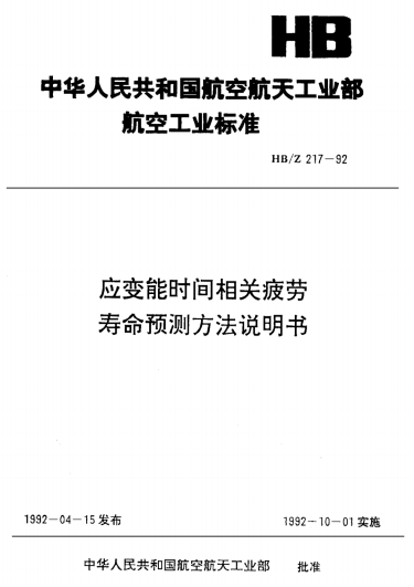 HB/Z 217-1992應(yīng)變能時間相關(guān)疲勞壽命預(yù)測方法說明書
