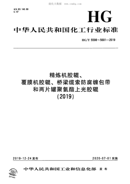 HG/T 5598-2019精煉機膠輥Rubber roller for refining machine HG/T 5598-2019精煉機膠輥Rubber roller for refining machine