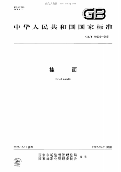 本文件不適用于添加禽蛋、蔬菜、水果或其他糧食等原料制作的花色掛面和手工制作的掛面。GB/T 40636-2021