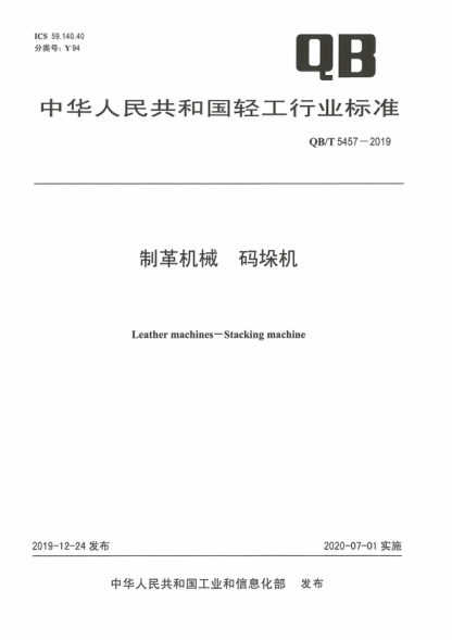 QB/T 5457-2019 制革機(jī)械碼垛機(jī) Leather machines-Stacking machine